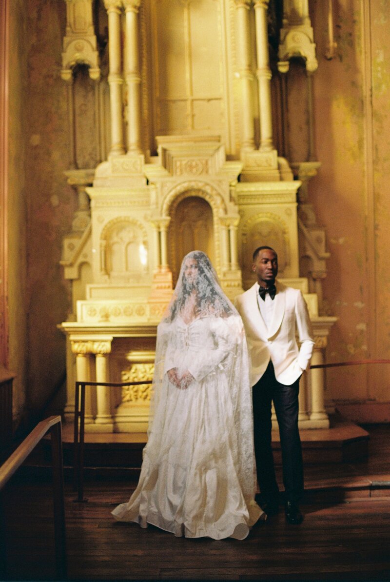 “Of Reverence and Light” is a visual ode to devotion, artistry, and the quiet grandeur of New Orleans. Set within the hallowed walls of Hotel Peter & Paul, this fashion-forward wedding editorial story blends the celestial elegance of Odylyne the Ceremony gown with the soulful textures and grace.